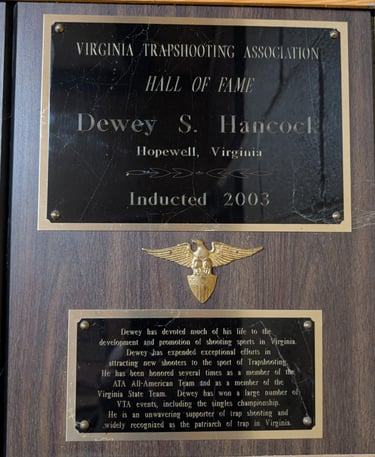Dewey has devoted much of his life to the development and promotion of shooting sports in Virginia. Dewey has expended exceptional efforts in attracting new shooters to the sport of Trapshooting. He has been honored several times as a member of the ATA All-American Team and as a member of the Virginia State Team. Dewey has won a large number of VTA events, including the singles championship. He is an unwavering supporter of trap shooting and widely recognized as the patriarch of trap in Virginia.